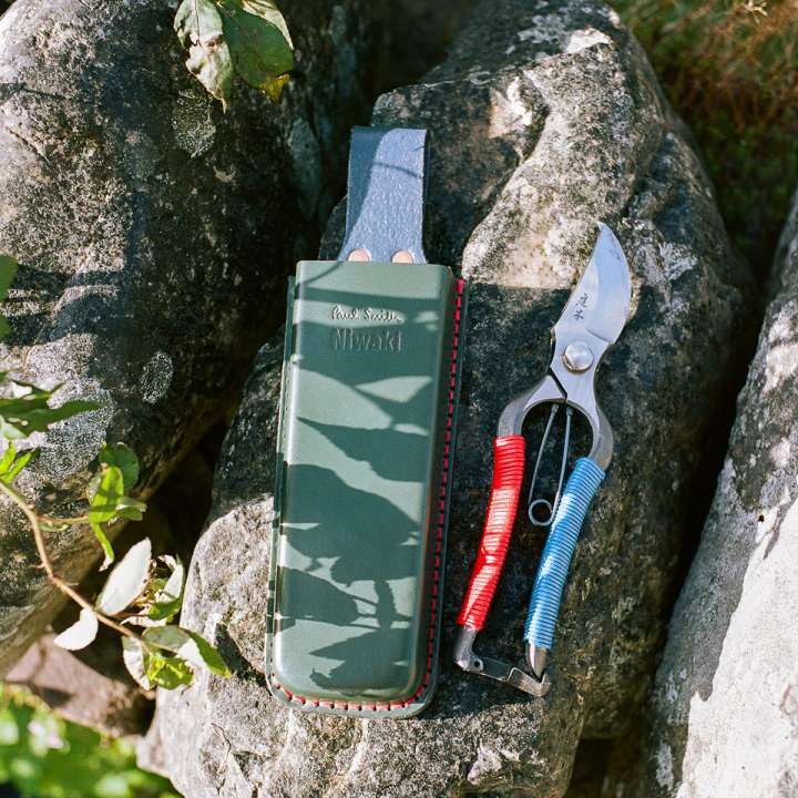 コラボレーションでは、剪定鋏、園芸用ナイフ、ツールバッグ、家庭用鋏の4つのアイテムが展開されます。いずれも、ニワキが誇る高い機能性と耐久性に、ポール・スミスらしいカラフルなレザーやステッチが加わり、所有する喜びを感じられるデザインに仕上がっています。